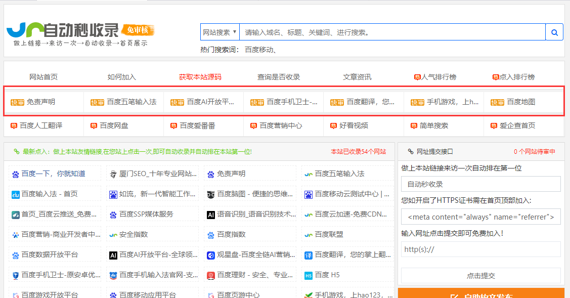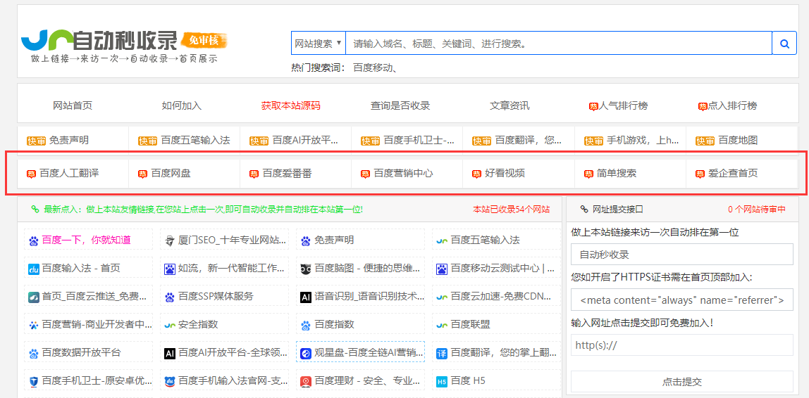 50元/月服务介绍:采用本站强制收录通道,成功购买将自动强制通过审核并显示,支持首页网址和内页网址的收录。