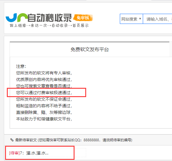 50元/站服务介绍:当软文发布后,您可以通过本服务自助付费软文审核极速通过。